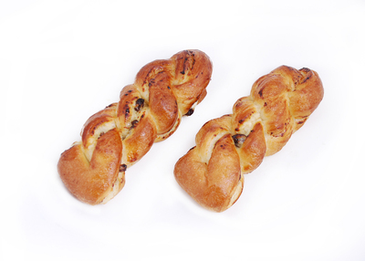 Magus pärmitaignast kohupiimatäidise ja rosinatega saiake.