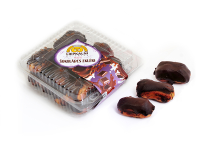 Läbinisti šokolaadised ekleerid on kaetud pruuni šokolaadiga, mille täiteks on rammus vahukoore-šokolaadikreem.