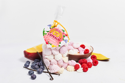 Ühes pakendis on 4 tüüpi miniatuurseid vahukomme - vaarikas, mustikas, vanill ja mango. Käsitsi valmistatud!