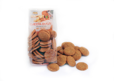 Koostisosad: Täisterarukkijahu (35%), juust (32%) (piim, kaltsiumklorrid, toiduvärv beetakaroteen, maisitärklis), või (15%), munad, küüslaugupulber, sool, paprikapulber, rosmariini ekstrakt