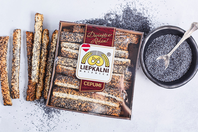 Krõbedad mooniseemnetega kaetud lehttaignaküpsised.