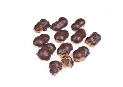 Läbinisti šokolaadised ekleerid on kaetud pruuni šokolaadiga, mille täiteks on rammus vahukoore-šokolaadikreem.