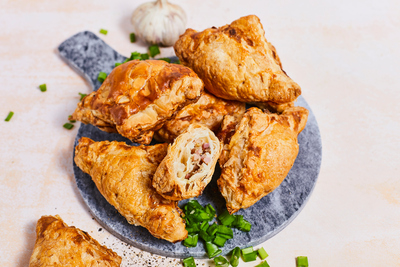 Õhuline lehttaignast lihapirukas hakklihatäidisega.