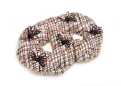 Piduliku kirsitäidisega kringel, kaetud rohke valge šokolaadiga.